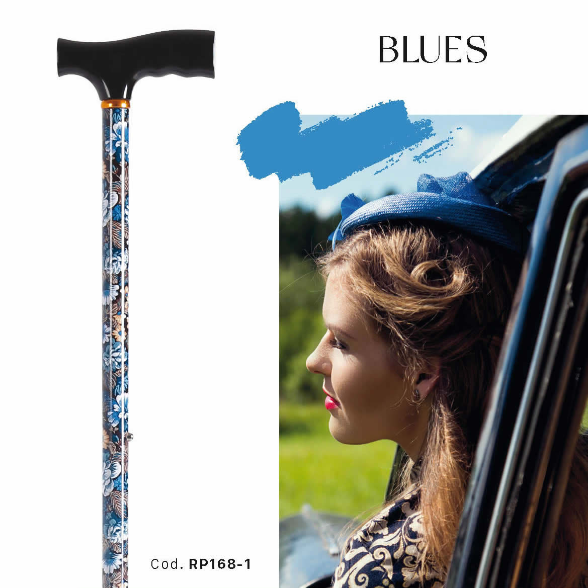Bastone in alluminio fantasia fiori con manico a T in legno – Brio