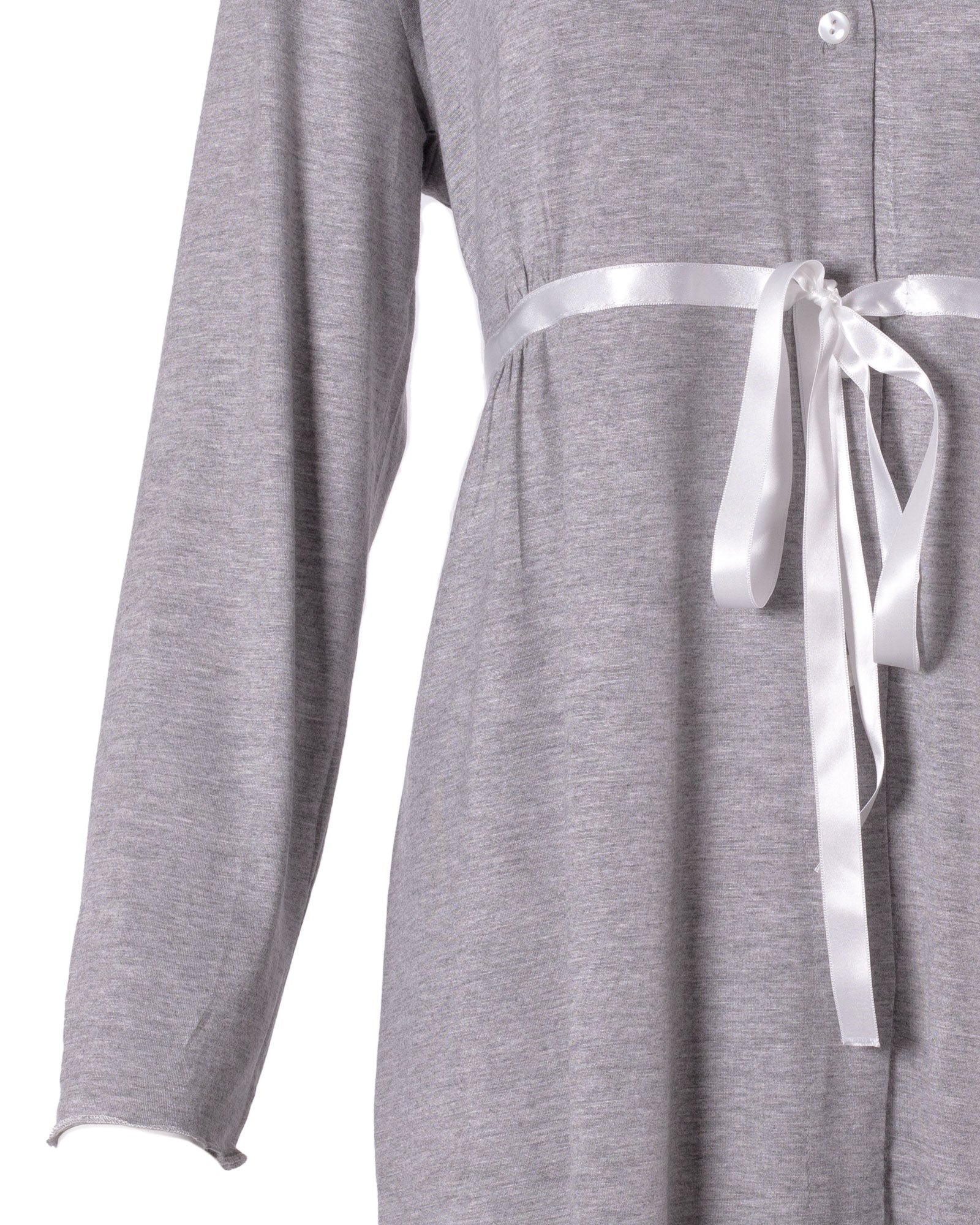 Comoda camicia parto in grigio melange è realizzata in viscosa elasticizzata, un materiale morbido e traspirante che garantisce il massimo comfort