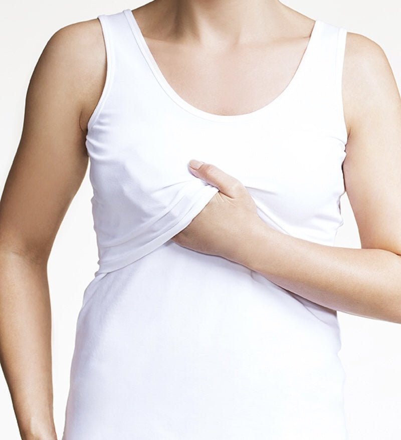 Comoda canotta per allattamento con speciale apertura che consente di allattare ovunque con discrezione.
