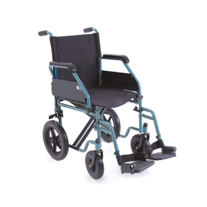 Sedia a rotelle pieghevole: braccioli ribaltabili e pedane estraibili