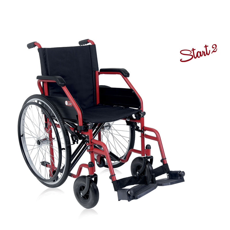 • Ruote posteriori con sgancio rapido in alluminio a raggi, con gomme nere in PU (senza camera d’aria) e corrimano in acciaio verniciato nero