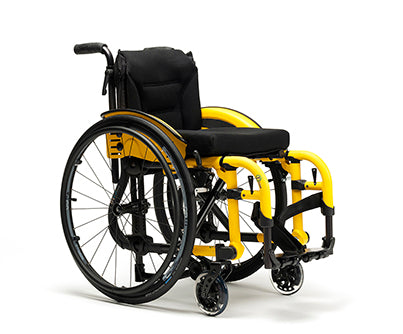 La TRIGO-T è una carrozzina superleggera a telaio pieghevole con pedane estraibili, particolarmente adatta per l’utilizzo giornaliero e per le sue misure ridotte, agile e facile da manovrare e da trasportare. Il telaio in alluminio, leggero e robusto, è ideale per utenti attivi. La sezione del telaio triangolare conferisce alla carrozzina robustezza e resistenza. Sedile e schienale tensionabili. Peso in configurazione standard da cm.42 : Kg 11,2. Portata massima: 130 Kg.