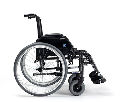 Carrozzina standard a schienale fisso.
