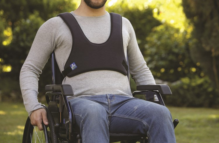 Indicata per evitare lo scivolamento in avanti e per favorire il contenimento del busto per pazienti seduti su carrozzina o sedia comoda. La cintura è particolarmente confortevole grazie al tessuto imbottito col quale è stata realizzata. Dotata di nastri regolabili in lunghezza con attacco rapido su supporto ad X, chiusure a clip che consentono un rapido e corretto posizionamento per qualsiasi corporatura su tutti i modelli di carrozzine, sedie comode o seggioloni, nonché un rapido sgancio in caso di emergenza.