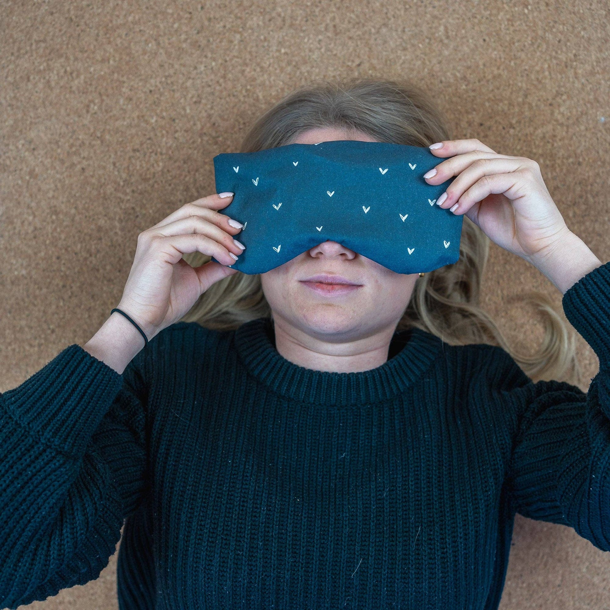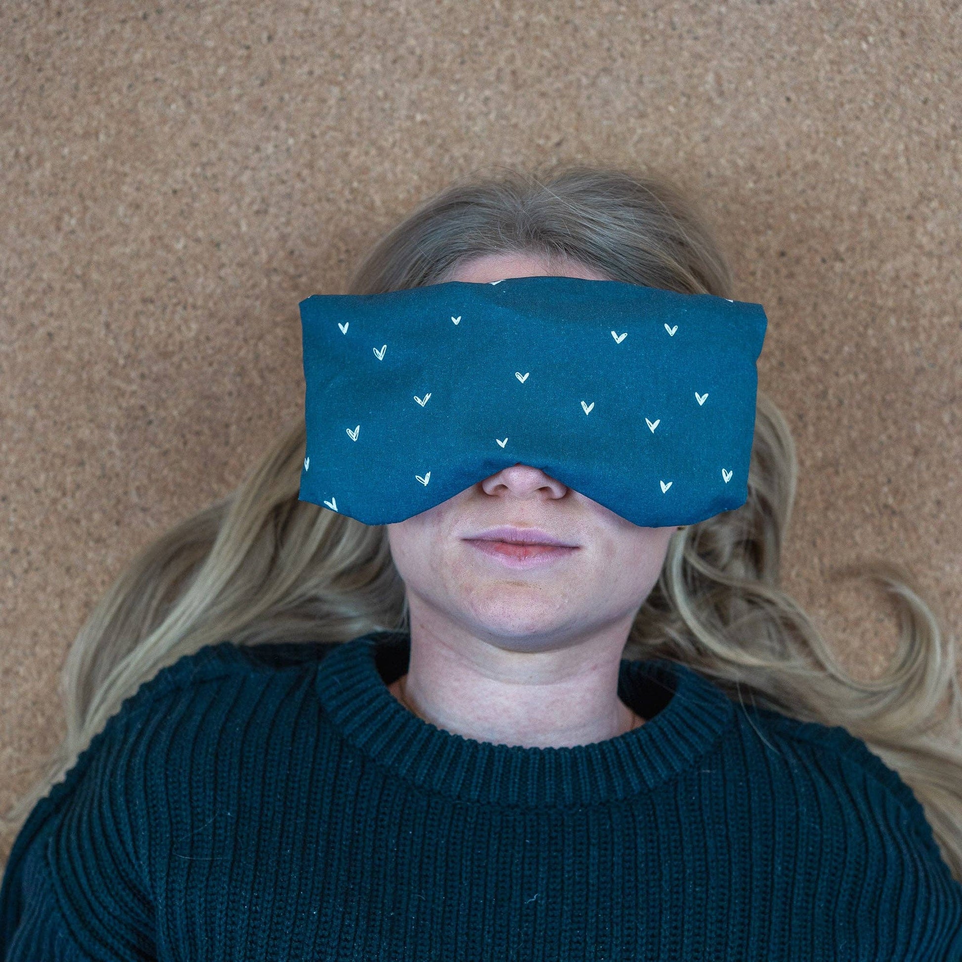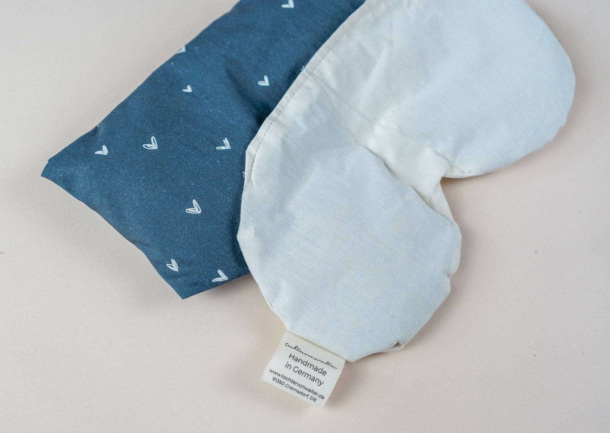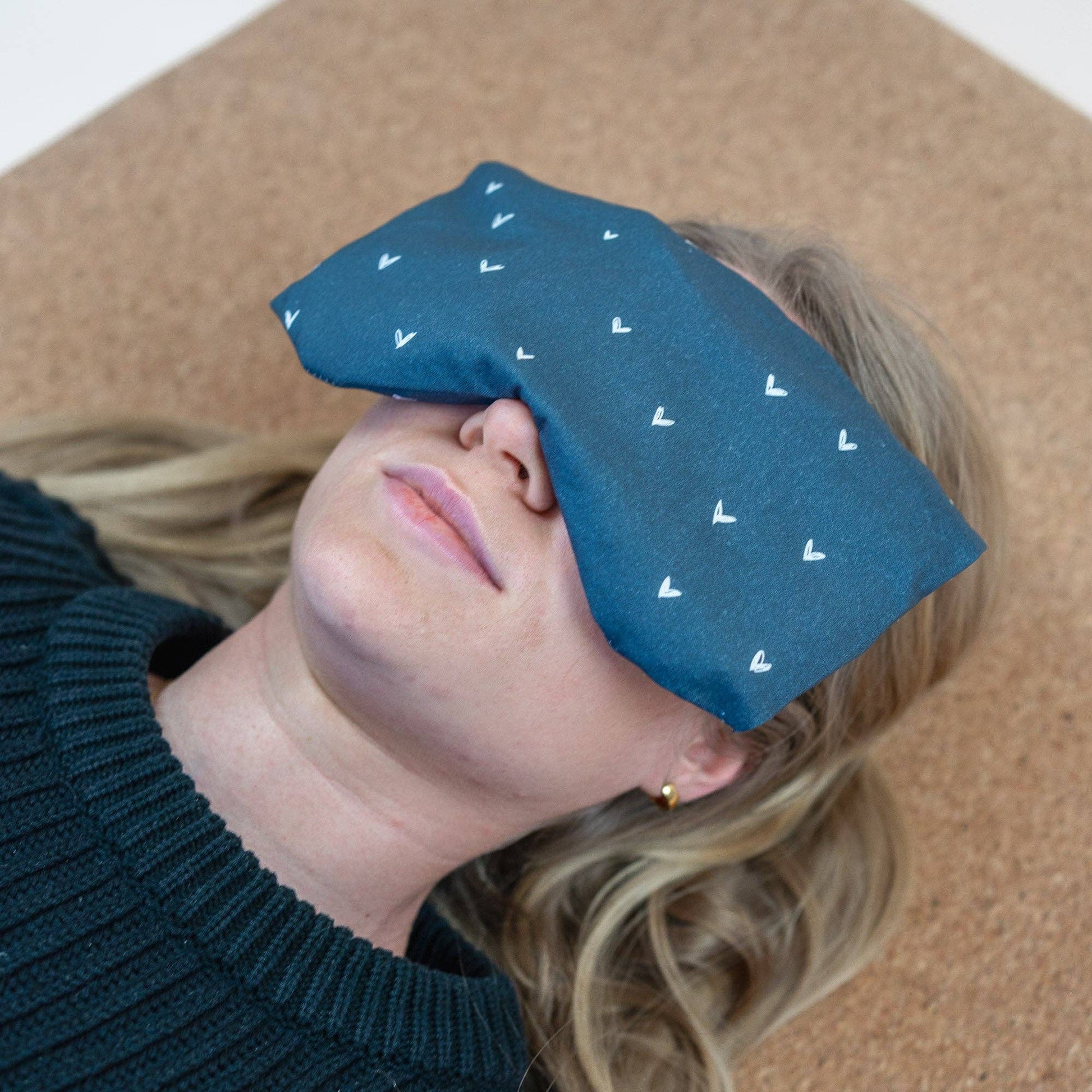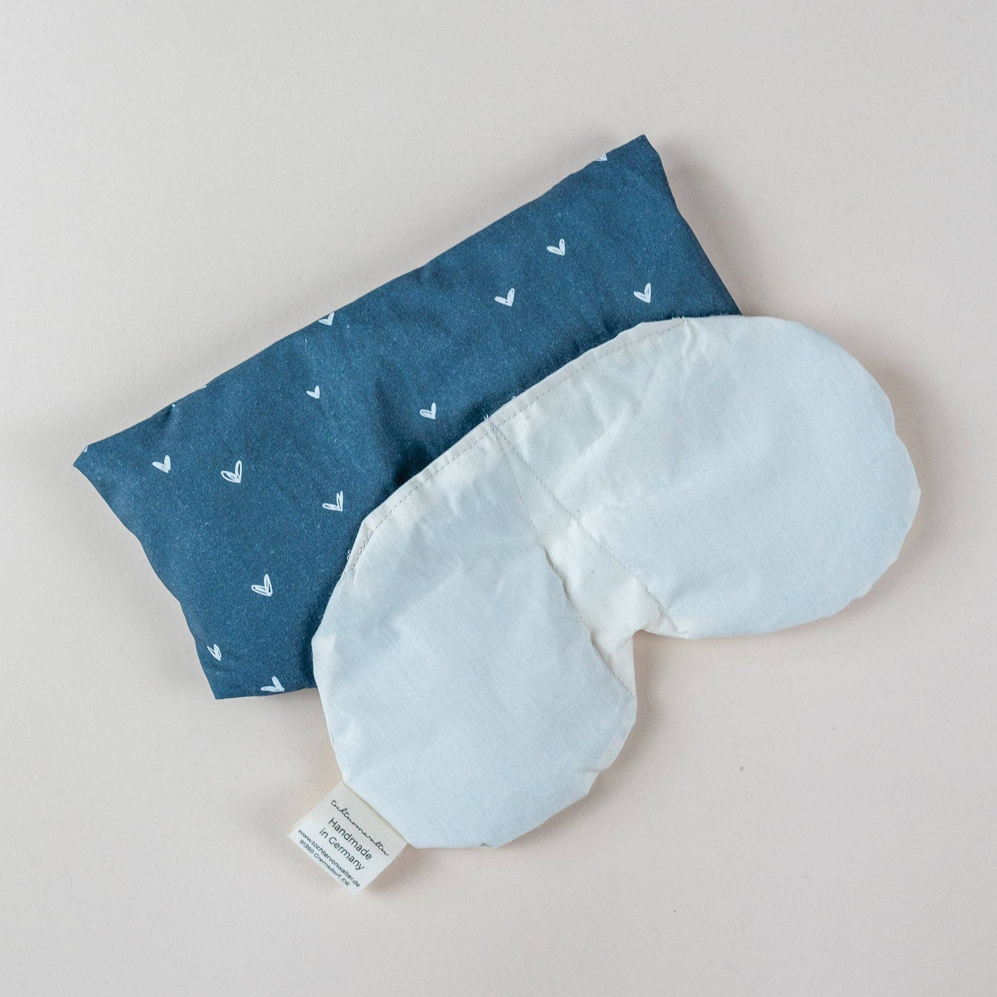 Cuscino per occhi con farro biologico e lavanda biologica cuoricini blu