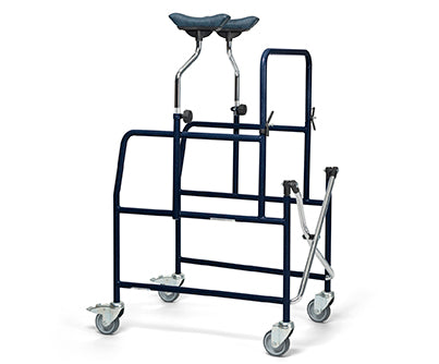 Struttura tubolare in acciaio verniciato blu, ascellari imbottiti, regolabili in altezza.