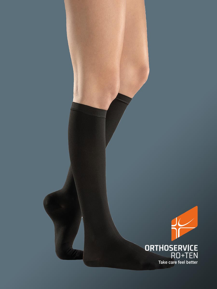 Le calze a compressione graduata Electa uniscono l’efficacia terapeutica all‘eleganza e allo stile. Morbide e fini, permettono di non rinunciare alla classe in tutte le occasioni.