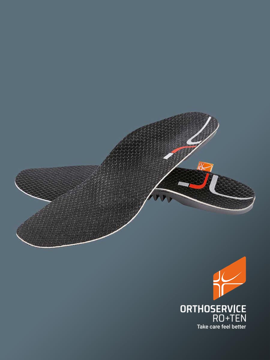 - Strato inferiore in PU, con funzione di protezione degli strati soprastanti da abrasione e deformazione. Facilita l'introduzione del plantare nella calzatura.
