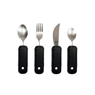 Posate ad impugnatura facilitata destinate a persone con scarsa autonomia nell’uso di una o di entrambe le mani. Supporto che permette di utilizzare le posate in totale sicurezza, affaticando molto meno le articolazioni. Disponibili cucchiaino, cucchiaio, forchetta e coltello.