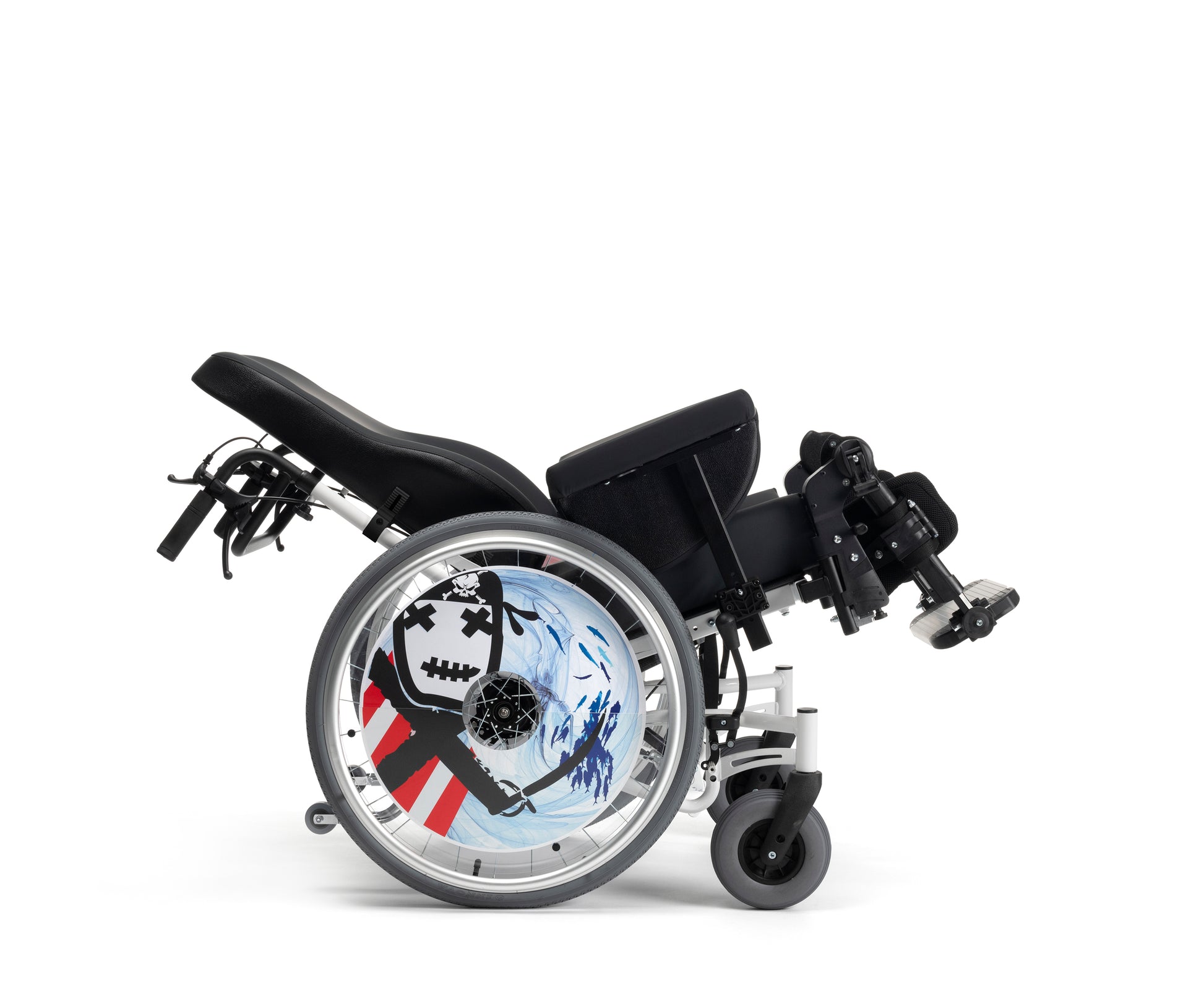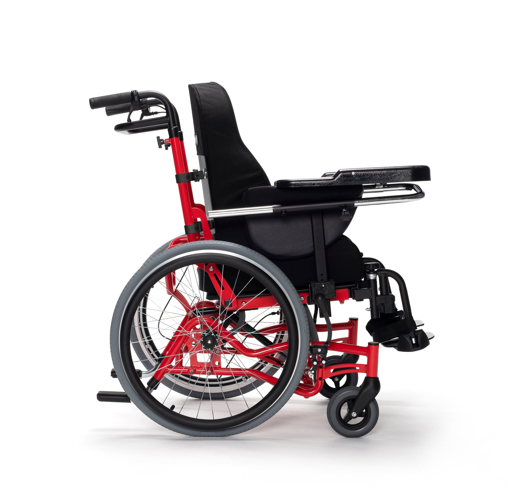 - Ruote posteriori da transito da 16” (mm 400) PU grigio, con raggi in plastica neri; versione ad autospinta con ruote posteriori da 22” PU grigio