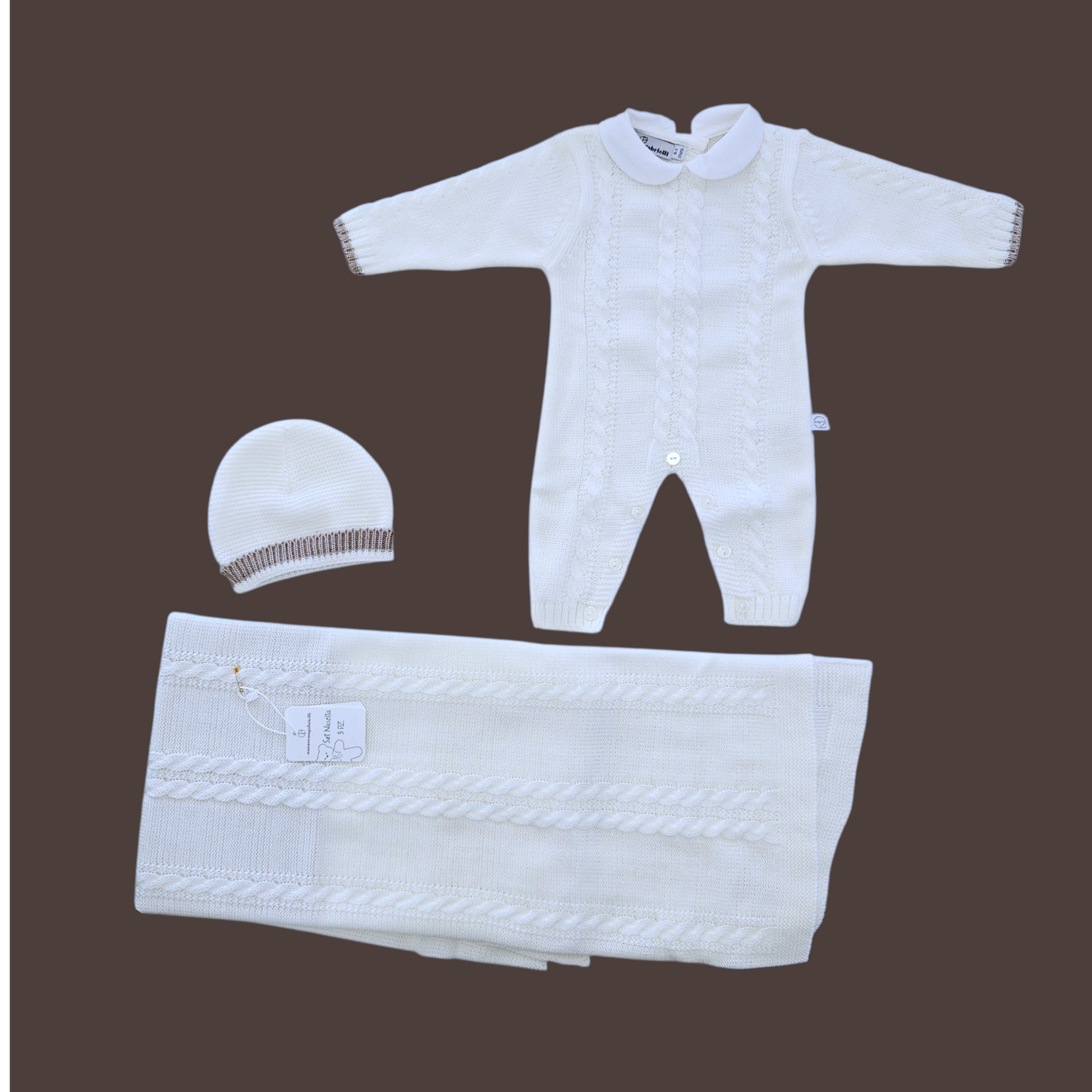 Set nascita 3 pz. tutina, copertina e cappellino in morbidissima lana 0-1 mese. NAZARENO GABRIELLI
